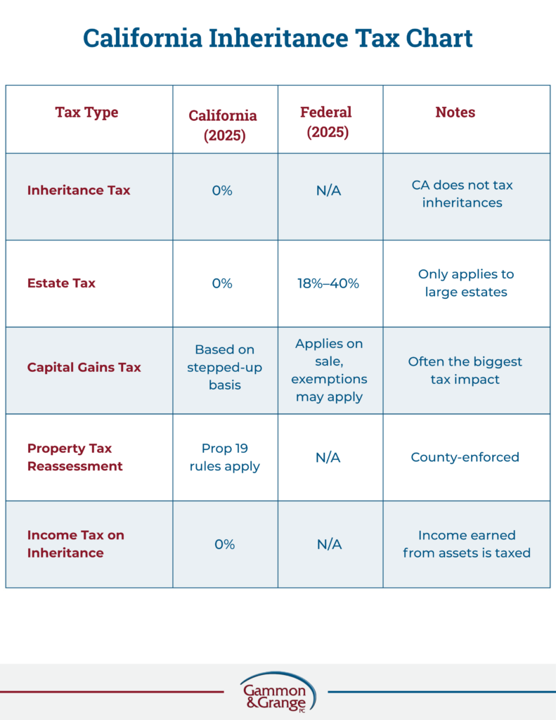 There is no California inheritance tax — and trusts don’t change federal estate tax rules.